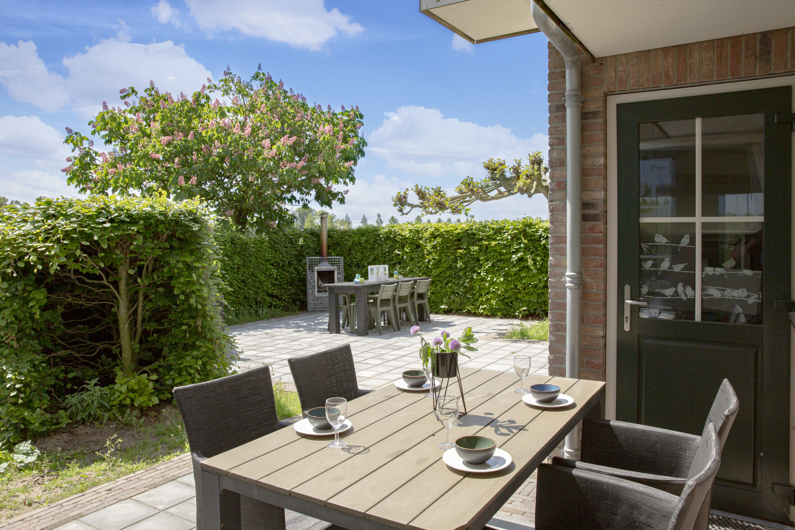 Rondom de vrijstaande woning ligt een ruime tuin met een zonnig terras op het zuiden, waar u in alle rust kunt genieten van de landelijke omgeving.