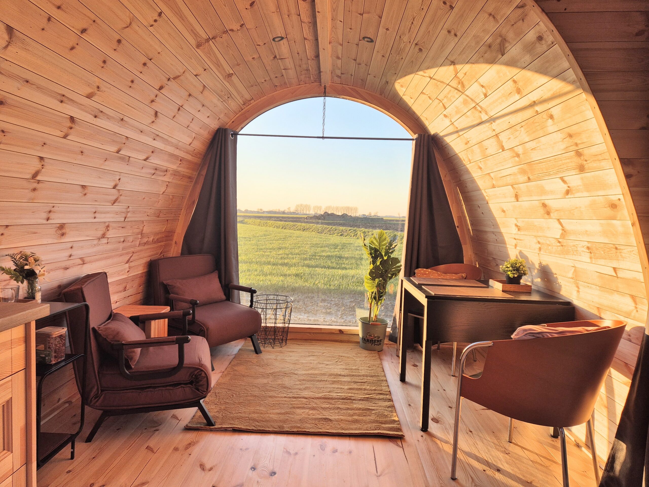 Onze accommodaties zijn volledig ingericht met een keuken, slaapplaatsen, zithoek, douche en toilet, zodat je comfortabel kunt verblijven.